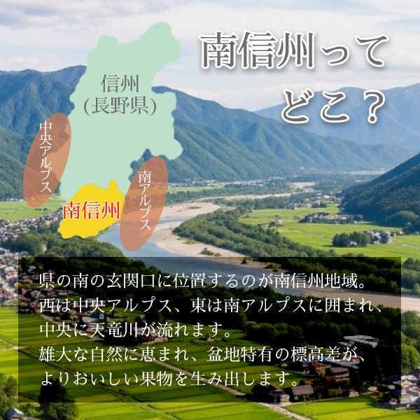 そして南アルプスからの清らかな水に育まれた「南信州産サンふじ」。
